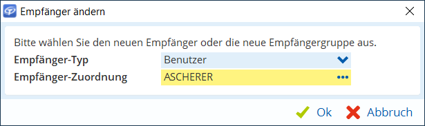 Empfänger eines Posteingangs ändern. Beim Ändern des Posteingangsempfängers wird im Gegensatz zum Weiterleiten kein neuer Posteingang erstellt.