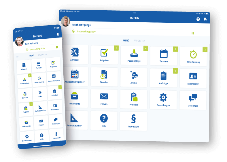Papier, Bleistift und der gute alte Zollstock sind auch in Ihrem Handwerksalltag immer weniger gefragt? Die richtige Software fürs Handwerk wie TAIFUN Handwerk oder TAIFUN openBusiness unterstützt Handwerksbetriebe in allen Büroangelegenheiten und bietet dabei via TAIFUN App auch auf der Baustelle gewerke-spezifischen Funktionen wie Terminplanung, Baustellentagebuch, digitale Zeiterfassung und vieles mehr.