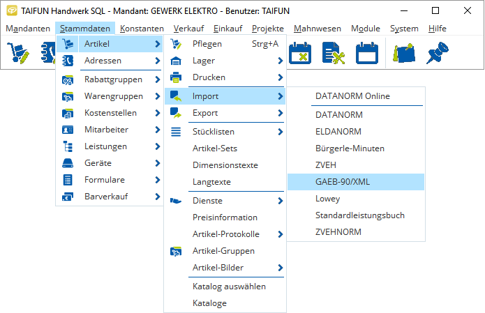 Nutzen Sie den von TAIFUN entwickelten Webservice DATANORM Online und importieren Sie die DATANORM-Kataloge Ihrer Elektro-Großhändler, ohne TAIFUN verlassen zu müssen.