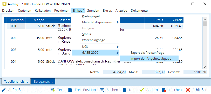 Übernehmen Sie Leistungsverzeichnisse ganz einfach in Ihr Angebot! Die GAEB-Schnittstelle ermöglicht den blitzschnellen und komfortablen Import und Export von Leistungsverzeichnissen.