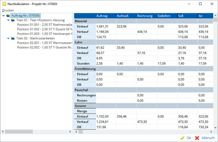 Hinter Ihrem Preis kann im Projekt natürlich eine komplexe Positionskalkulation gespeichert werden, die in verschiedenen Kostenarten unterteilt ist.