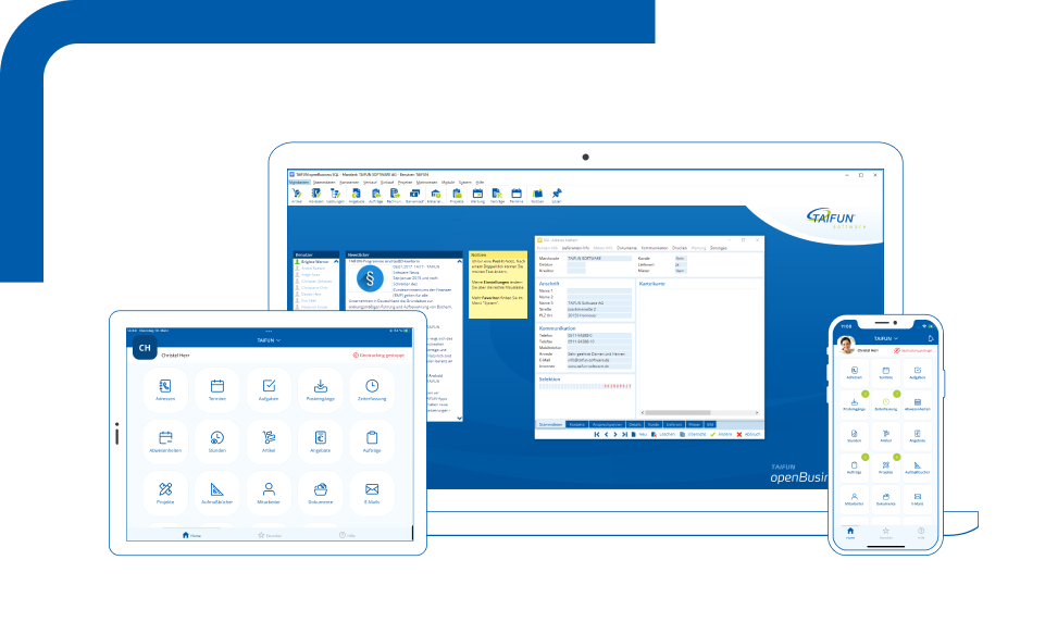 - Mobiler Zugriff auf Ihre Daten via TAIFUN App – über Tablet und Smartphone.