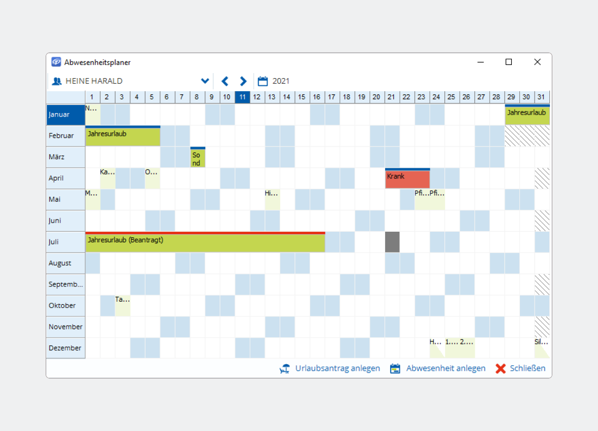 - Übersichtlicher Abwesenheitsplaner mit Urlaubsanträgen